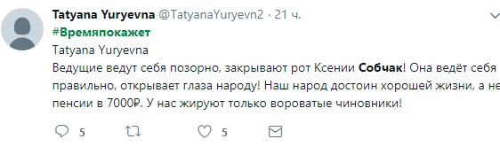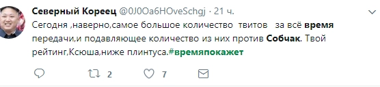 В июле этого года общественно-политического ток-шоу «Время покажет» подловили на вранье. В одном из выпусков было объявлено о том, что зрители могут общаться с гостями в студии с помощью соцсети Twitter.