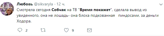 «Я возмущена до глубины души позорным поведением Артема Шейнина! Просто не допустимо так вести себя на 1 канале! Это неуважение к аудитории! Он неадекватен! Некорректное поведение, мягко сказано, обоих ведущих — заказ руководства!», «Ваш поход на данную программу похож на садомазохизм. Я думаю, что из миллионной аудитории данной передачки вам не удалось привлечь ни одного сторонника, ну или, максимум 1−2-ух человек», «Терпеть не могу этого ведущего с „Время Покажет“, блевать тянет от такого „русского“. Он рожу свою видел? Голос противный, всех унижает, а позволяют ему себя так бессовестно вести только потому, что он власти зад лижет!», «первый канал — дно! Как мне было стыдно за „ведущих“, которым как будто сказали, уничтожить Собчак… Да… У меня выскакивали глаза от вранья и поведения „мужчин-ведущих“ на первом», — пишут зрители.
