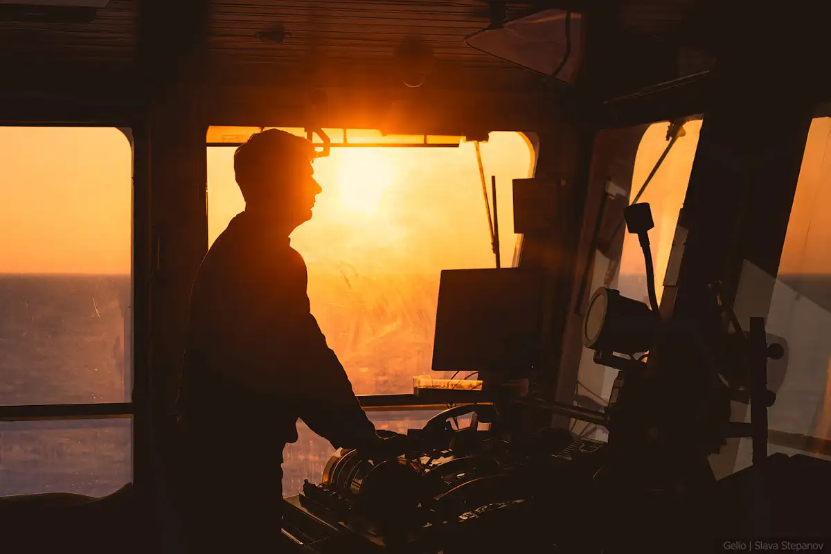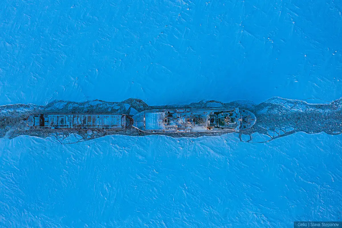 9. Судно может крениться то на один борт, то на другой, поднимать выше нос или корму, а обдув сжатым воздухом защищает от налипания льда и снега — благодаря этому «Вайгач» может дробить ледовое поле и двигаться дальше, даже когда прокладка канала тормозится из-за толстого льда.