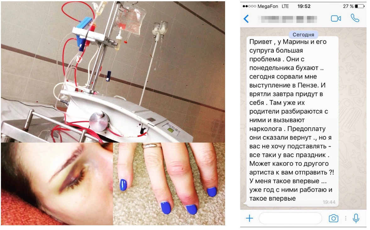 Бывшая солистка группы «Краски» Марина Киреева была избита во время корпоратива в Саранске. Из-за многочисленных травм девушка обратилась в больницу, о чем и сообщила своим подписчикам в Instagram, приложив подтверждающие фотографии.