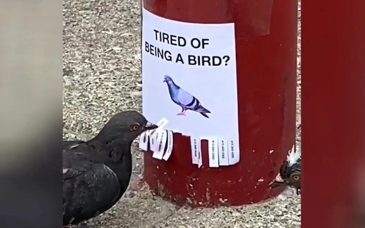 В соцсетях стал популярным ролик, где парень оставил на столбе объявление с надписью: «Надоело быть птицей?», которым тут же живо заинтересовались местные голуби. Кажется, пернатым всерьез надоело быть обычными скучными птицами, бессмысленно скитающимися по улицам города. Они рождены для большего! Возможно, кто-то из них мечтает быть президентом США, а кто-то домашним котиком. Нужно хотя бы попытаться измениться, а потом, кто знает. Вдруг в скором времени мы увидим предвыборную гонку человека и голубя?